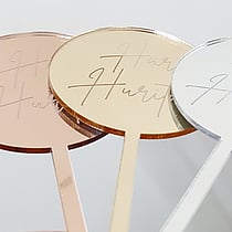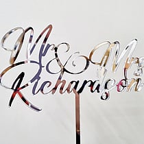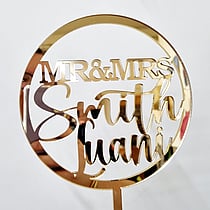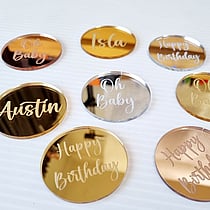 What materials do you use? We offer cake toppers NZ in a range of finishes, including mirrored acrylic (gold, silver, rose gold), solid colors, Printed acrylic or natural timber for a rustic look.