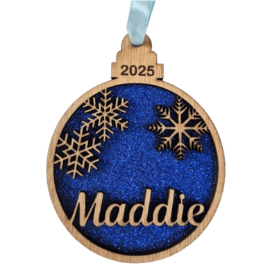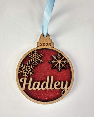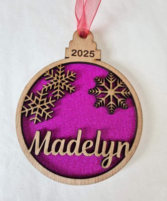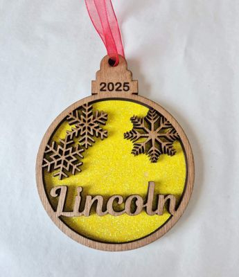 Double layer with glitter, Year, or birthdate engraved and name cut out.