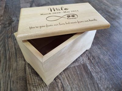 Our urns can be fully customised, in size & style to provide a personalised resting place for your precious fur baby.